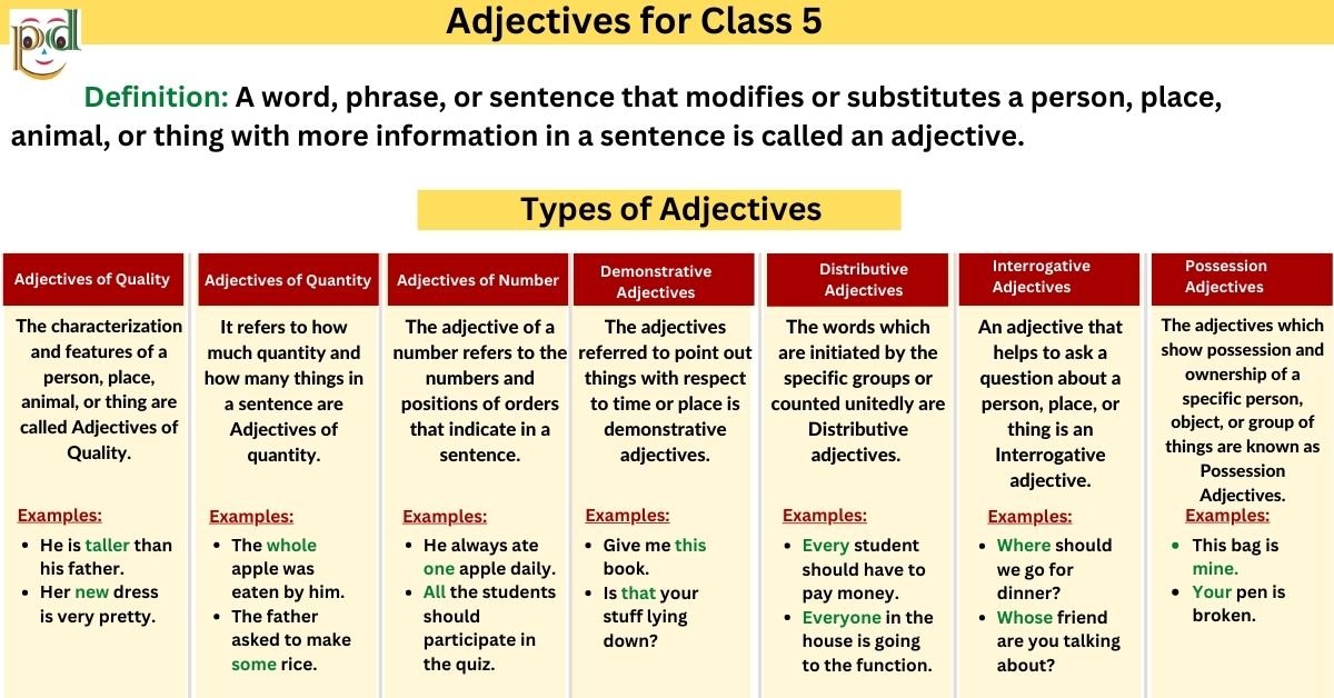 Adjectives for class 5 | Definition, Types, Examples, Worksheet, & PDF