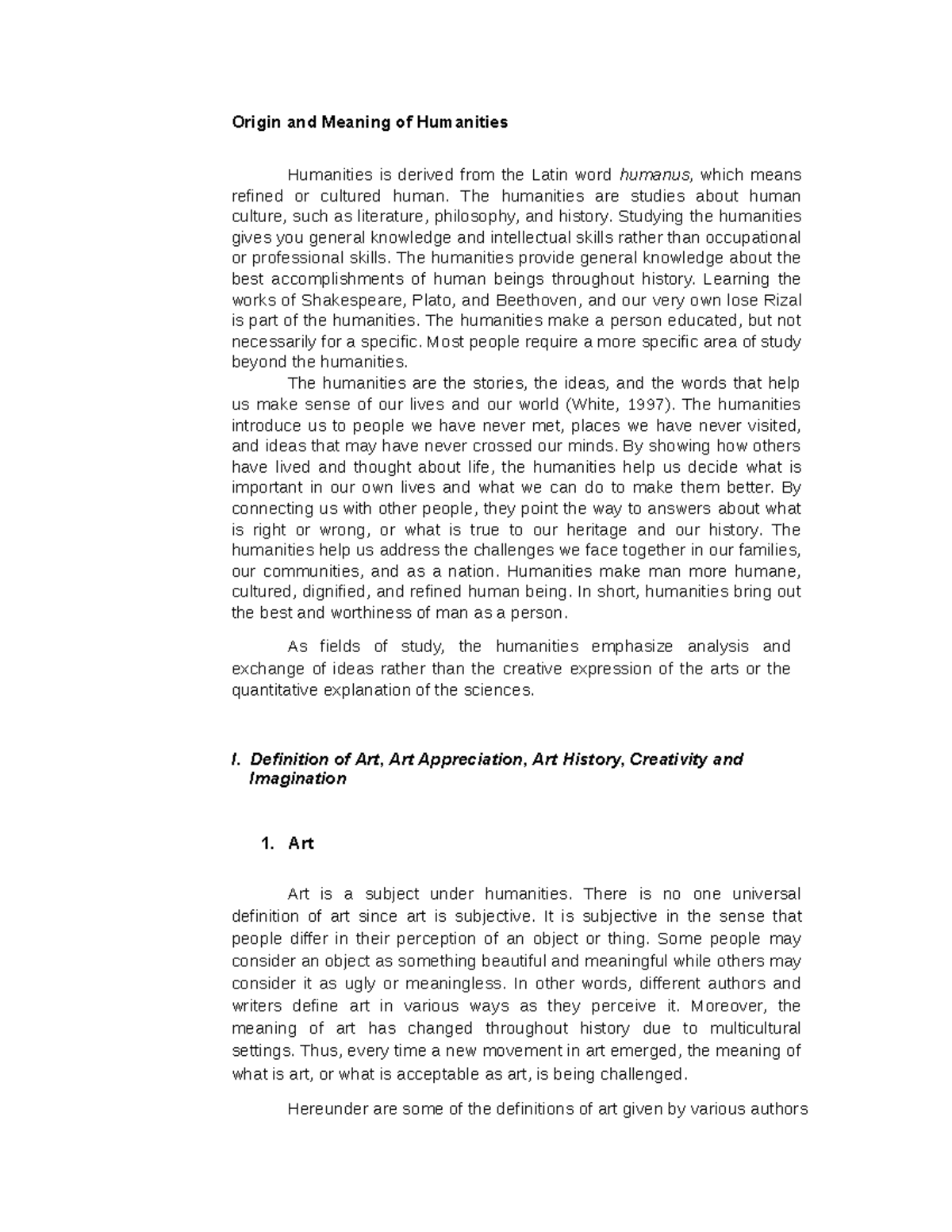 Humanities and Art: Definitions, History, and Appreciation