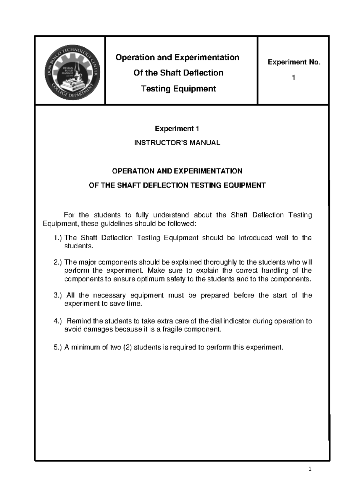 Experiment 1: Comprehensive Guide to Shaft Deflection Testing - Studocu