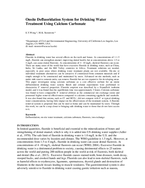 (PDF) Onsite defluoridation system for drinking water treatment using ...
