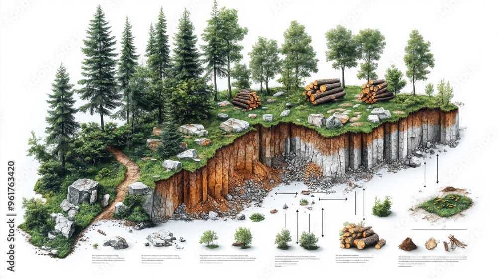 An illustration depicting the gradual process of deforestation and its ...