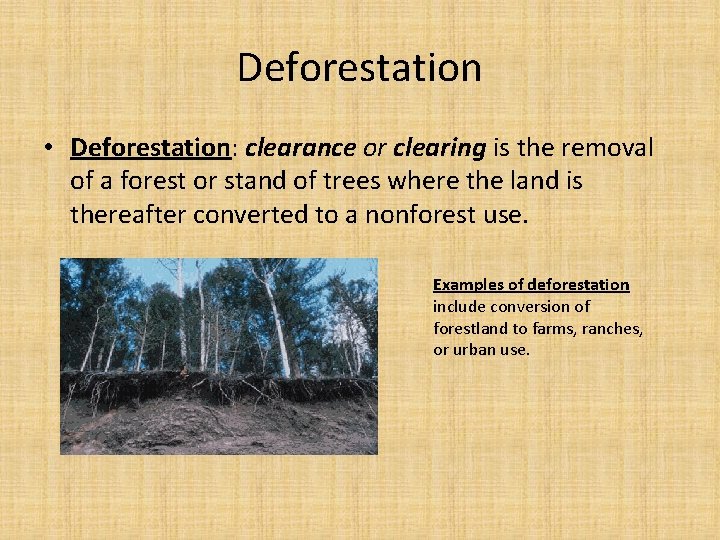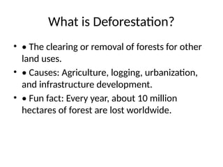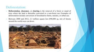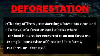 : The clearing or removal of forests for other land uses. | PPTX