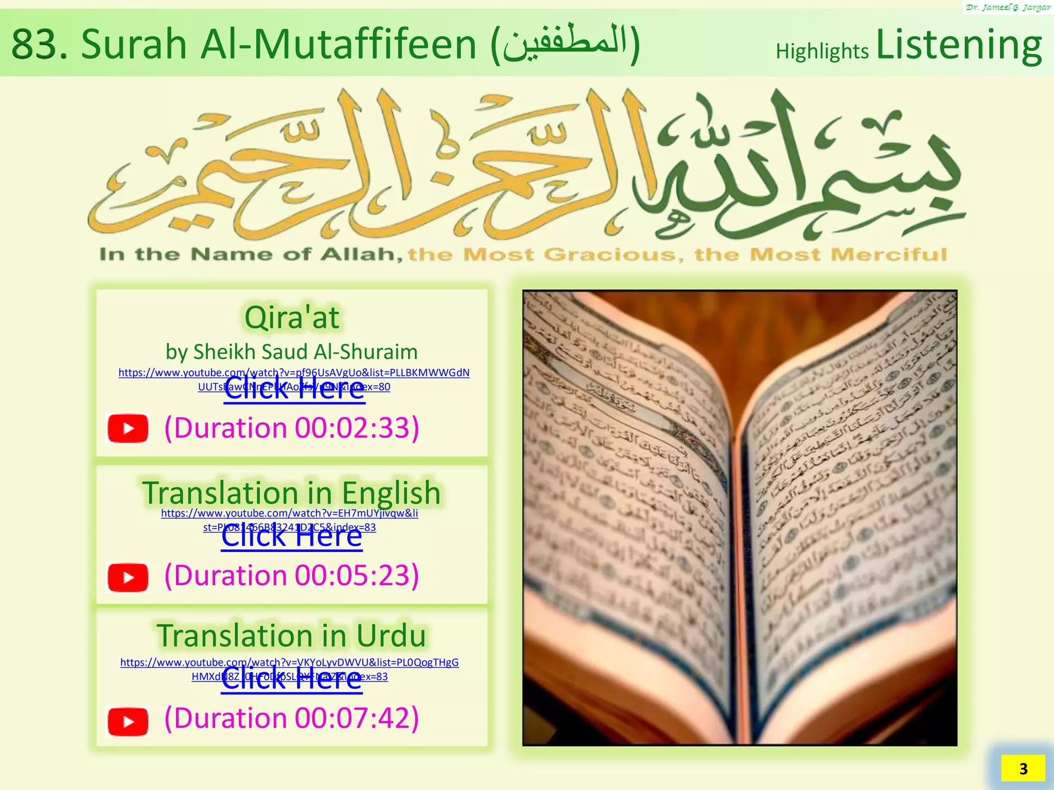 Sura Mutaffifin # 83: The Defrauders. English Translation American ...