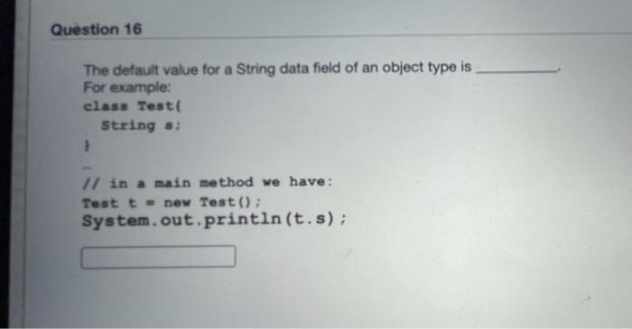 Solved Question 16 The default value for a String data field | Chegg.com