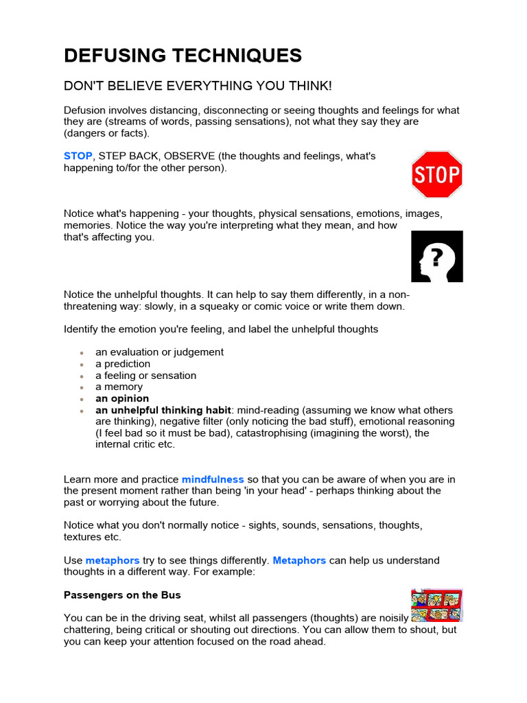 Defusing_Exercises.pdf | Thought | Bullying | Free 30-day Trial | Scribd