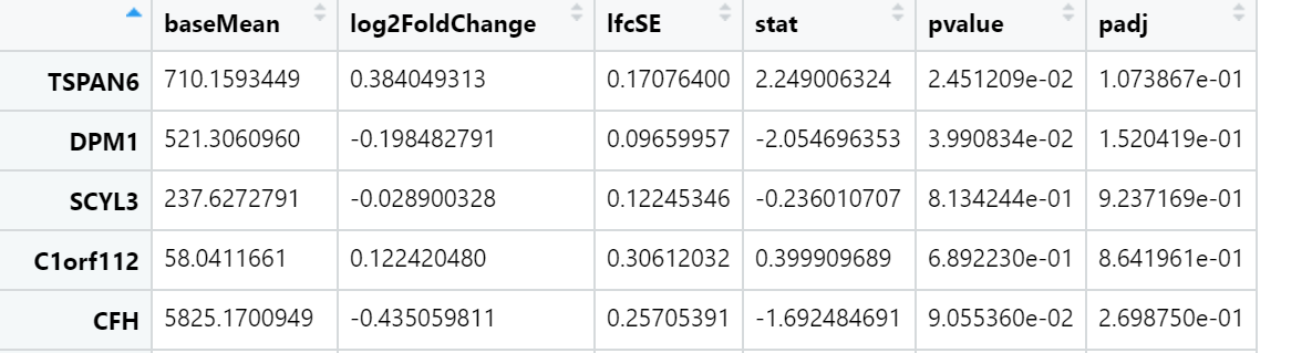 DESeq2 output — Galaxy tutorial RNA-seq single end analysis 0.1 ...