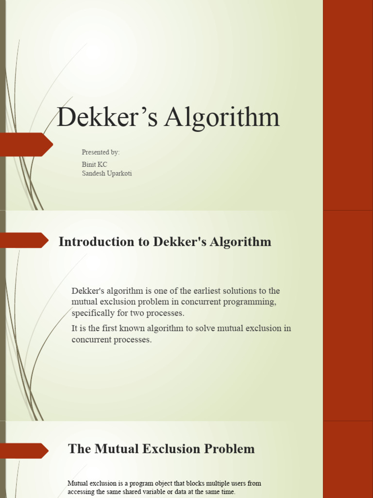 Week 10-1 Dekker's Algorithm - Dekkers Algorithm An algorithm for ...