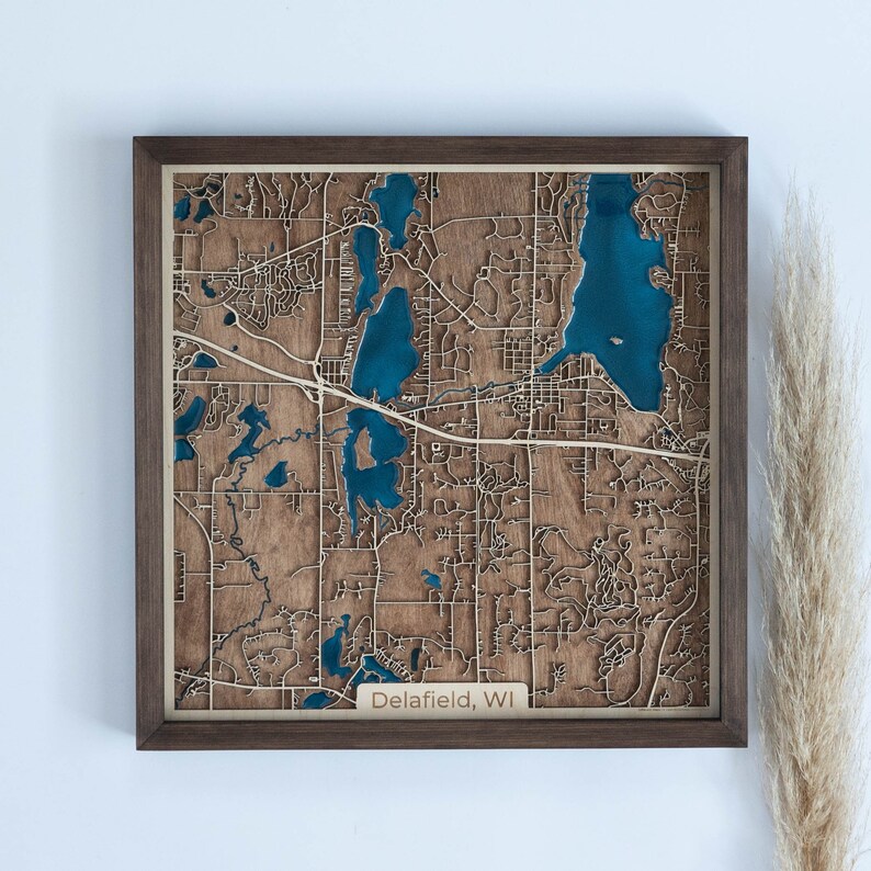 Delafield Wisconsin Art Map Print waukesha County Lake | Etsy