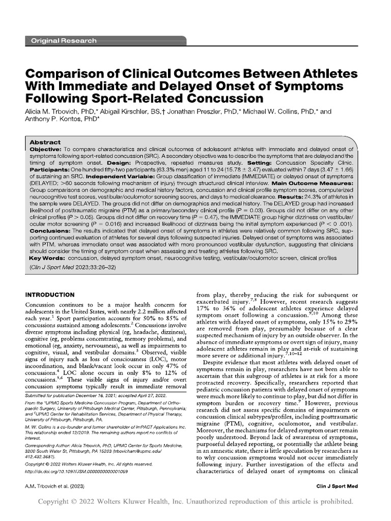 2023 - CJSM - Comparison of Clinical Outcomes Between Athletes With ...