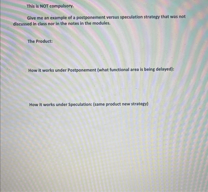 Solved A. Postponement allows a supply chain to delay | Chegg.com