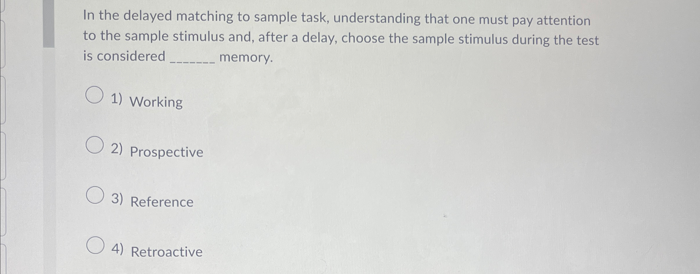 Solved: Using a diagram, describe the delayed matching-to-sample ...