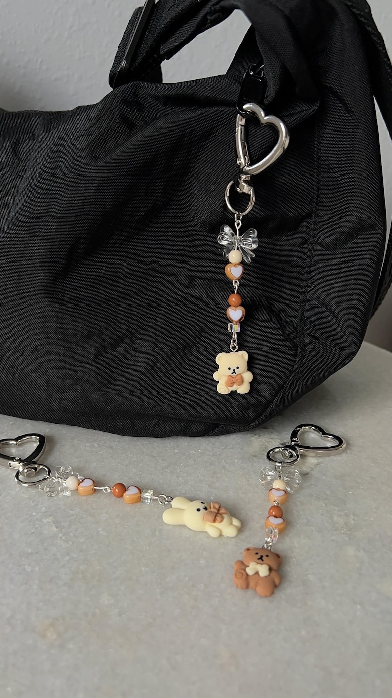 Teddy Bear or Bunny Beaded Neutral Toned Coquette Keychain With Silver ...