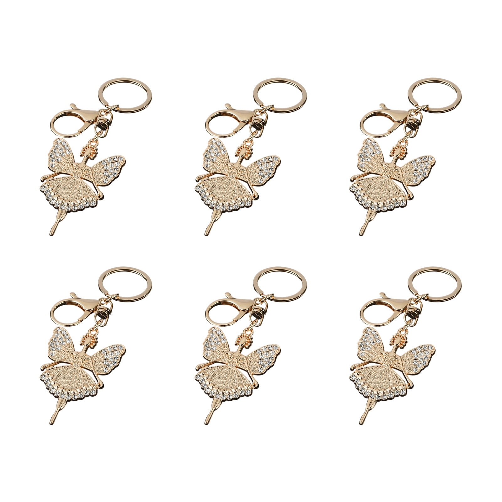 6Pcs Delicate Angel Keychain Set Rhinestones Decorations Zn Alloy Key ...