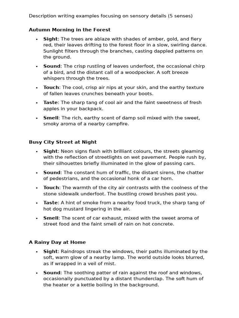Description Writing Examples Focusing on Sensory Details | PDF | Taste ...