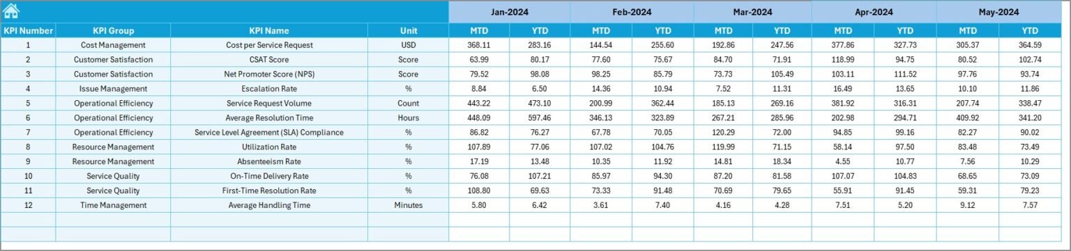 Project Management Service Delivery KPI Dashboard in Excel - PK: An ...