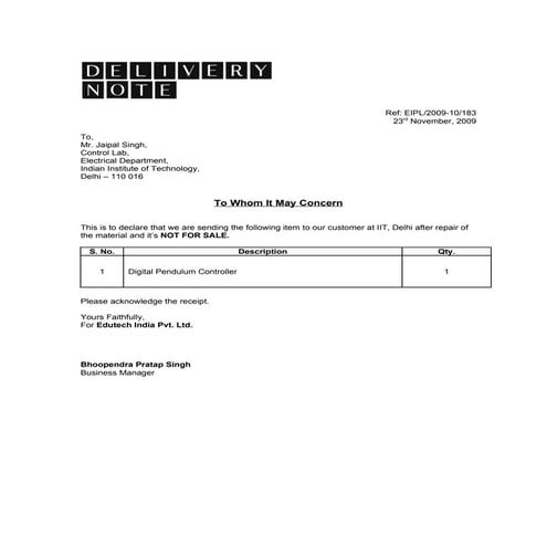 Delivery note iit, delhi1 | DOC