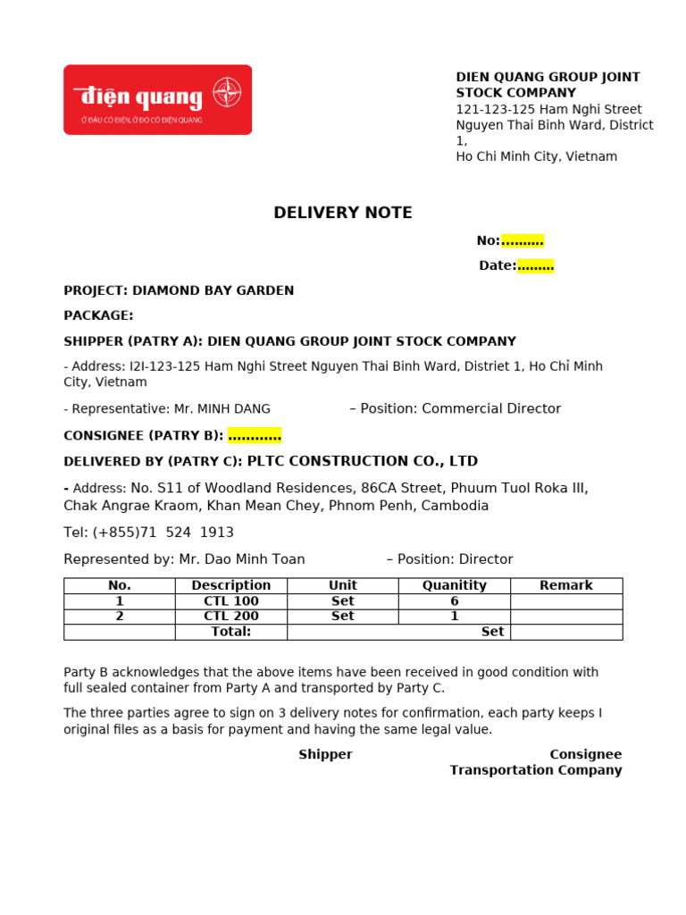 Delivery Note - Copy | PDF