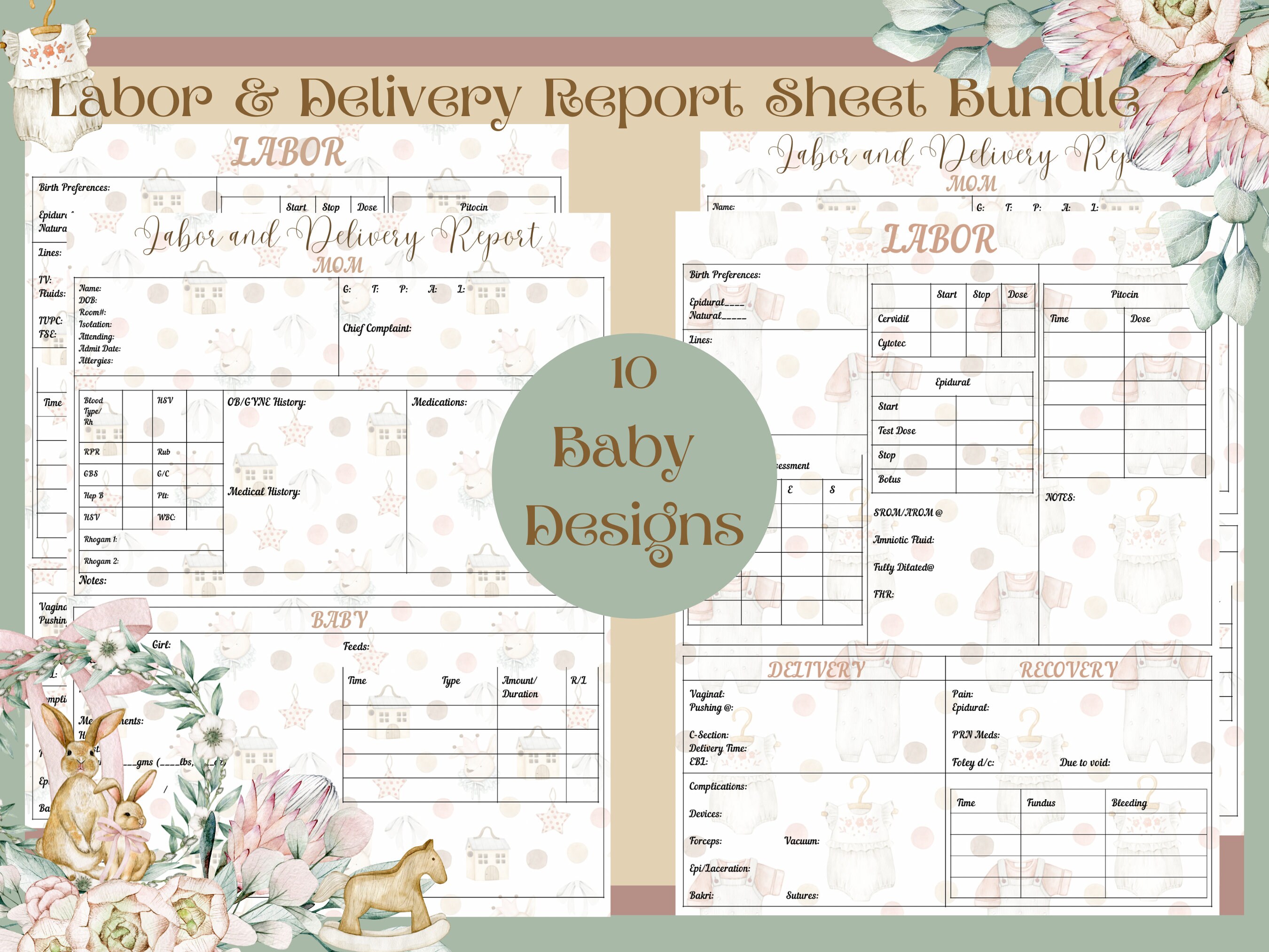 Labor and Delivery Report Sheet Bundle | Baby Theme | Nurse Report ...