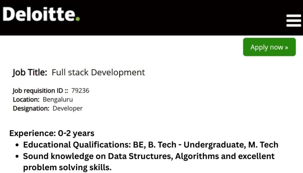 Deloitte Full Stack Developer Hiring 2025 | Freshers Apply | Bengaluru ...