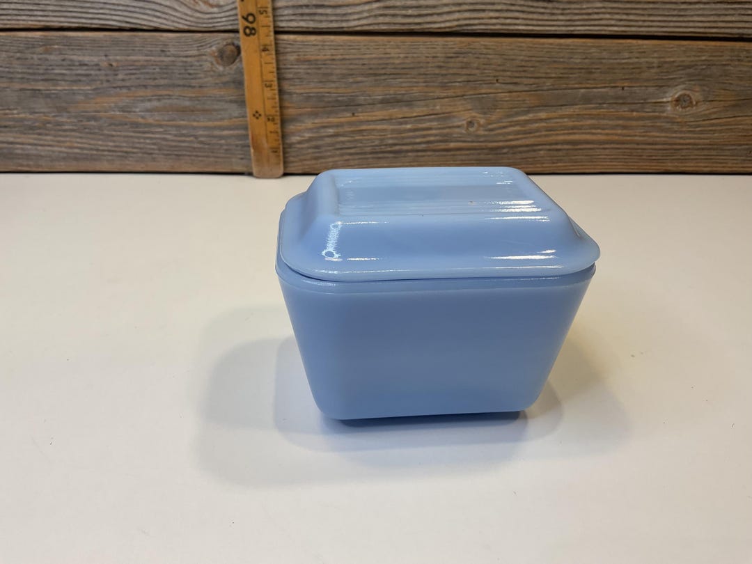 Vintage 40s Delphite Pyrex Blue Refrigerator Fridgie Set, 501, Made in ...