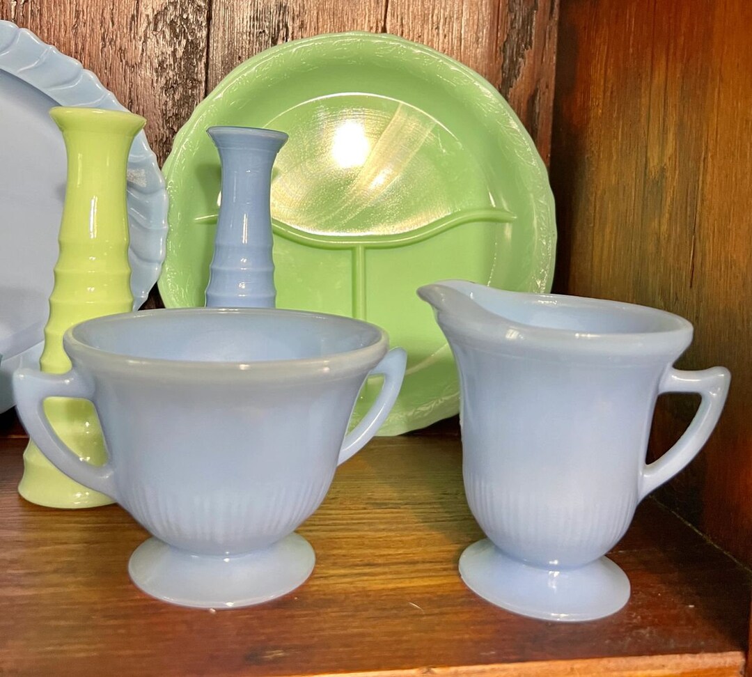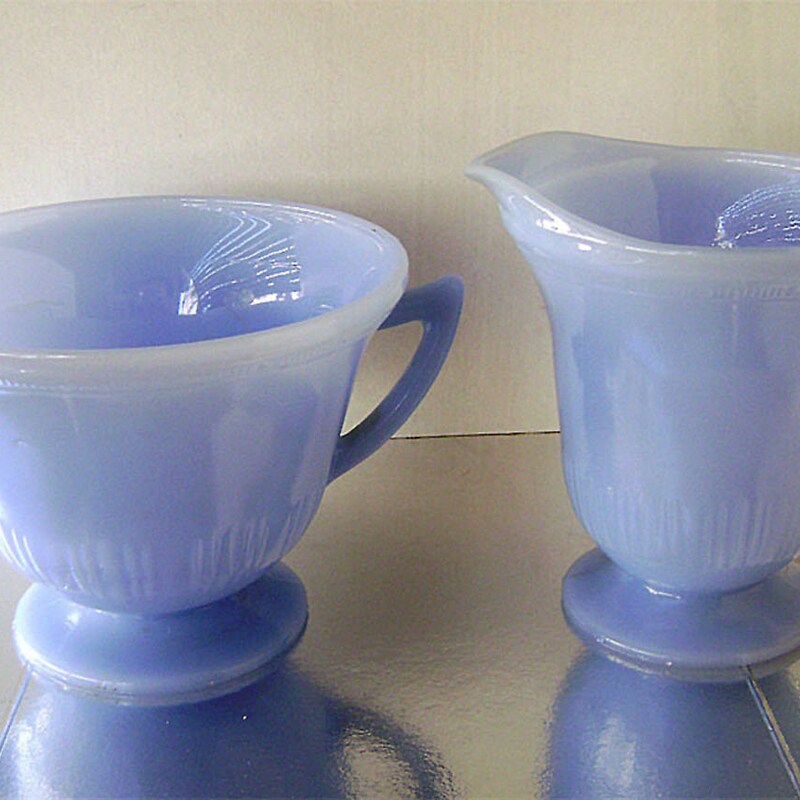 Antique 1940s Pyrex Blue Delphite Creamer and Sugar Bowl, Pie Crust ...