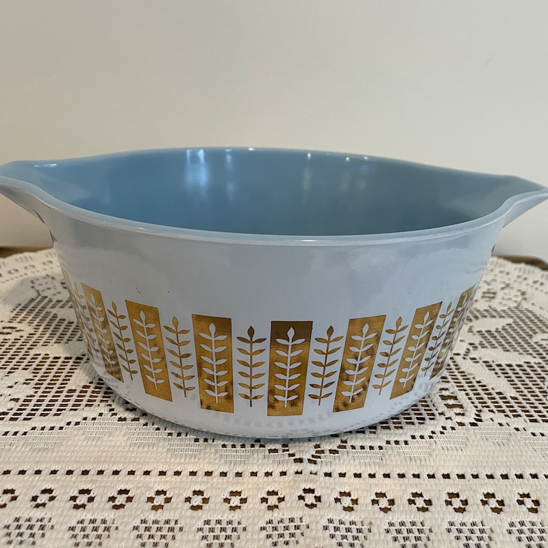Pyrex 1961 Promotional Delphite Blue With Gold Leaf 2.5 QT Casserole ...