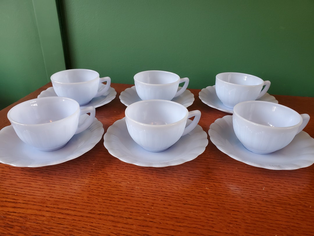 Pyrex Blue Delphite Cups and Saucers - 6 I Six 1950’s Pyrex Pie Crust ...