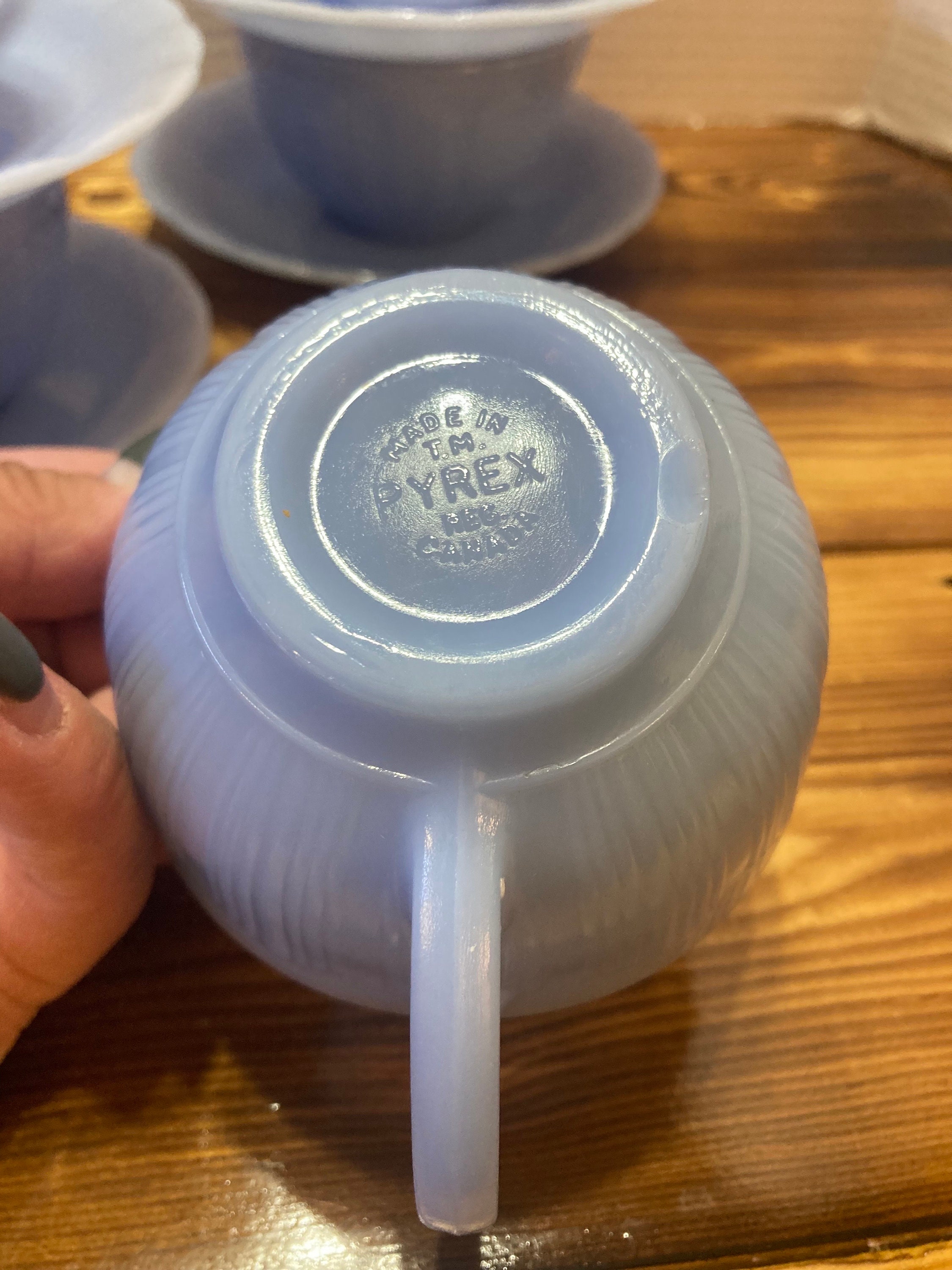 Vintage Pyrex, Milk Glass, Blue Delphite With Piecrust Pattern - Tea ...