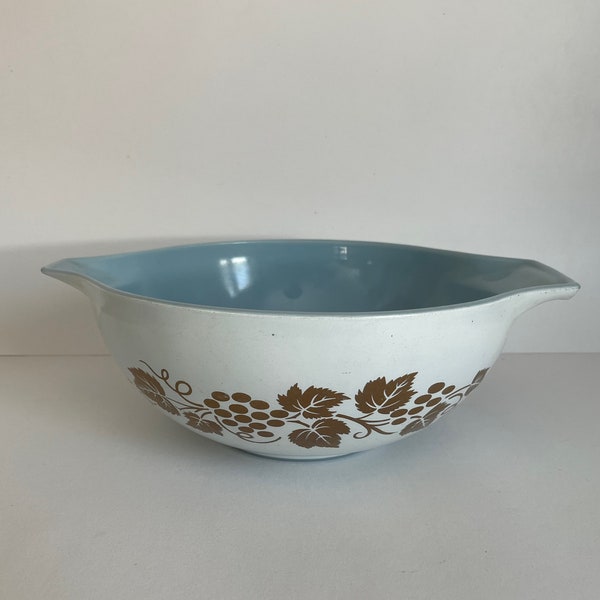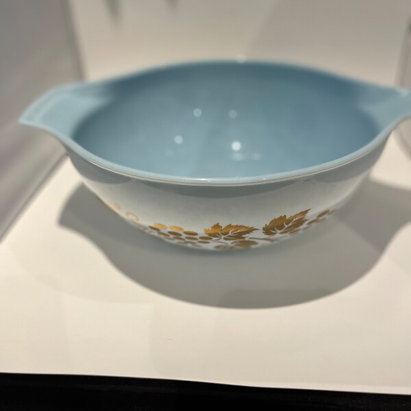 Vintage Pyrex Blue Delphite 444 Cinderella Bowl Gold Leaves and Grapes ...