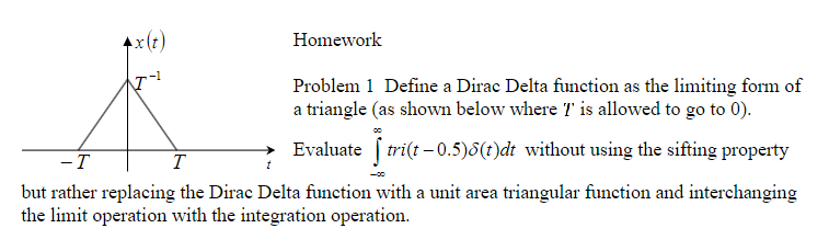 Solved Homework Problem 1 Define a Dirac Delta function as | Chegg.com