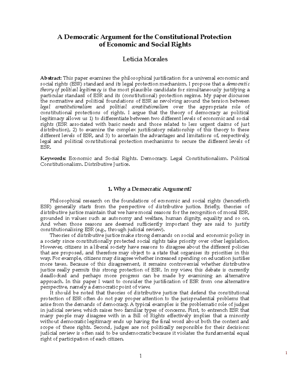 A Democratic Argument for Constitutional Protection of SER Md P 2011 ...