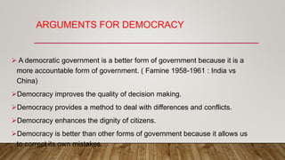 Arguments For Democracy | Advantage of Democracy |Political science ...