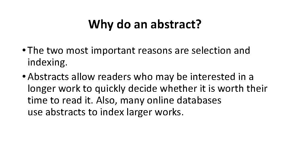 PPT - WHAT MAKES AN ABSTRACT? WHAT MAKES A GOOD ABSTRACT? USES OF THE ...