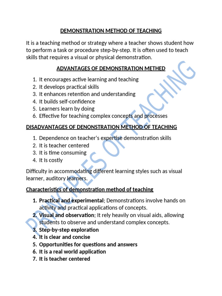 Demonstration in Teaching | PDF | Teaching Method | Learning