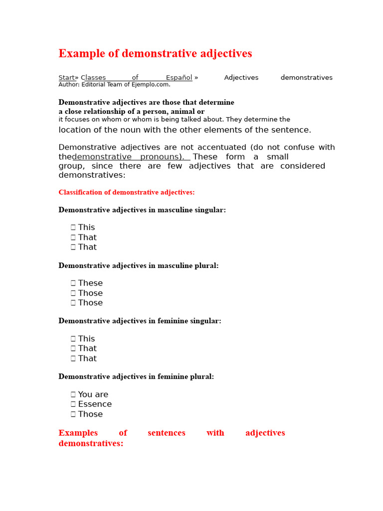 Example of Demonstrative Adjectives | PDF | Grammatical Gender ...