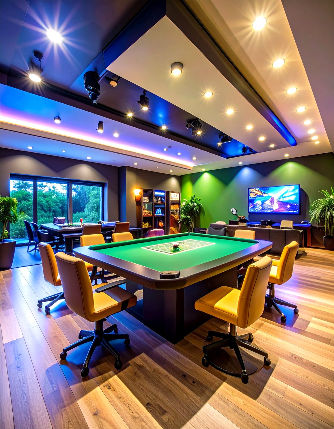 Sunlit workspace by day, Retrowave gamer den by night : Workspaces