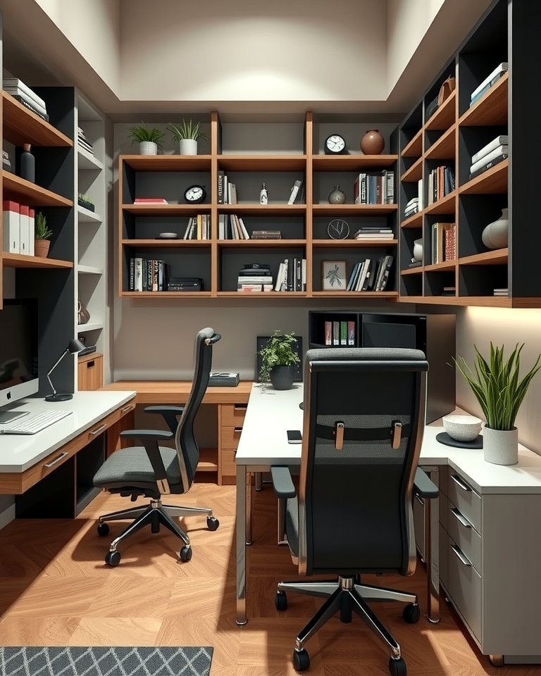 Dynamic space, Sophisticated nook, Clean workspace, Functional den ...