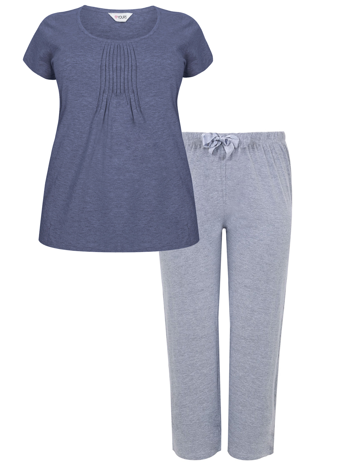 CURVE - - Denim/Grey Cotton Rich Pleat Front Short Sleeve Pyjamas ...
