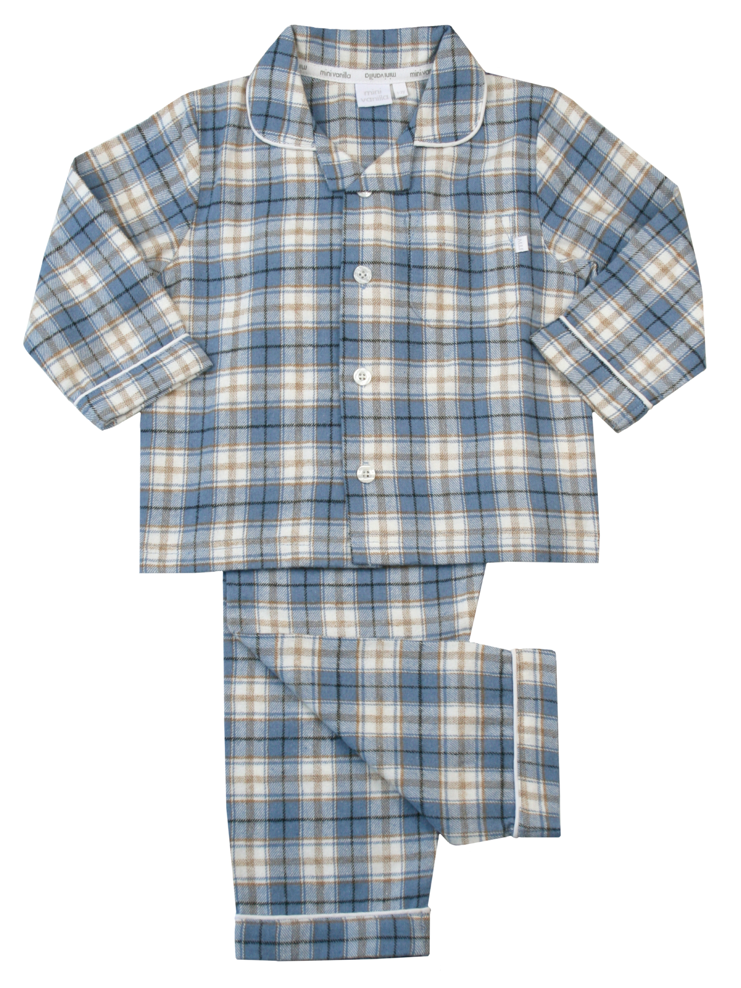 Boys Traditonal Cotton Pyjamas, in a Classic Faded Denim Blue and Ivory ...