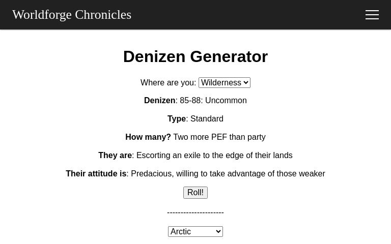 Denizen Matrix Generator for Ironsworn: Delve, by rsek