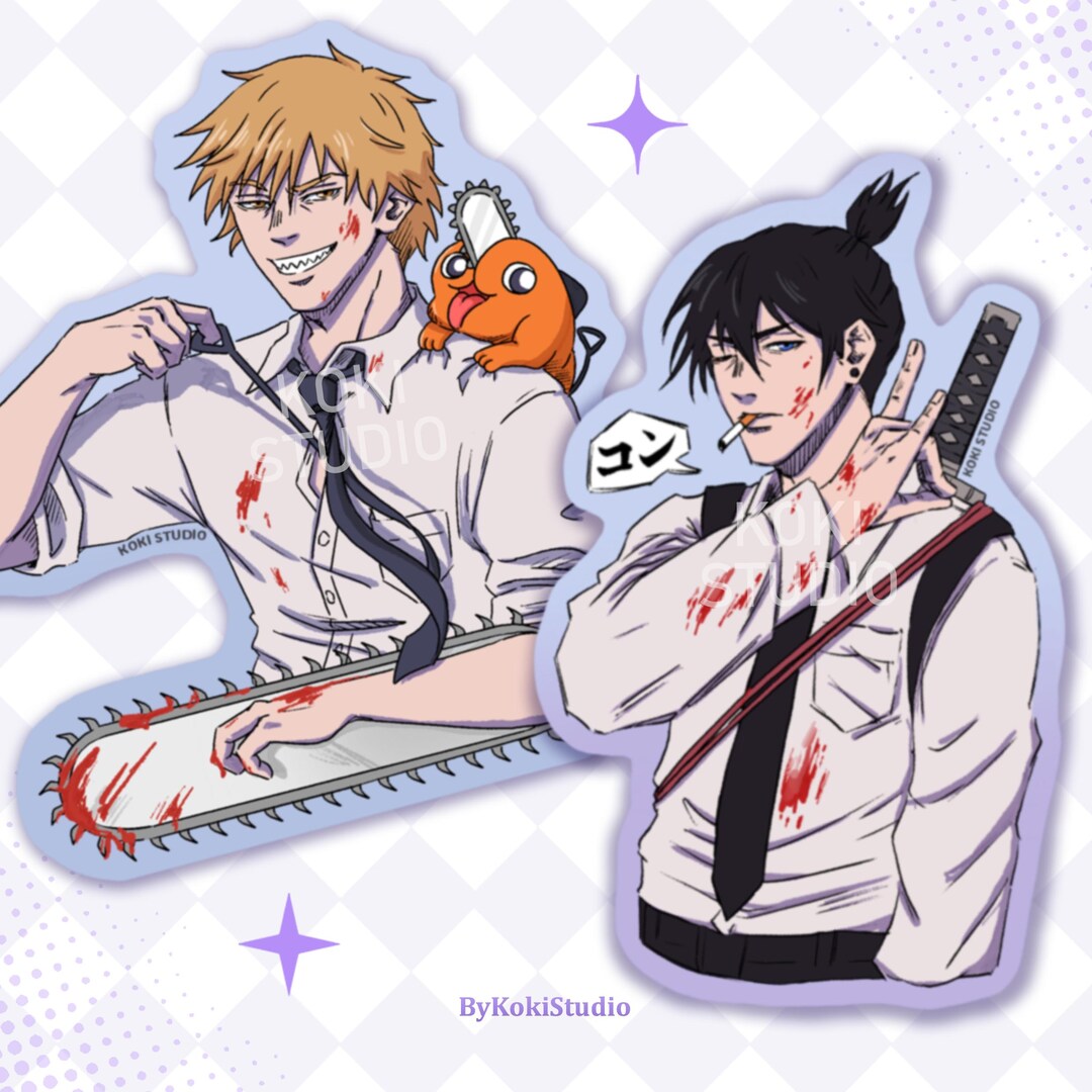 Aki & Denji | Matte Sticker | Fanart Merch | Anime Sticker | Matte ...