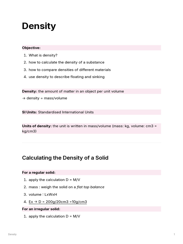 Understanding Density: Key Notes | PDF