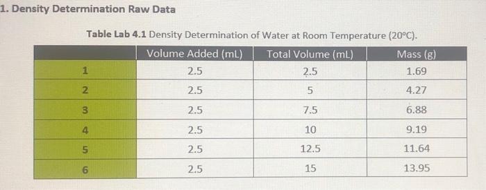 Solved 1. Density Determination Raw Data Table Lab 4.1 | Chegg.com