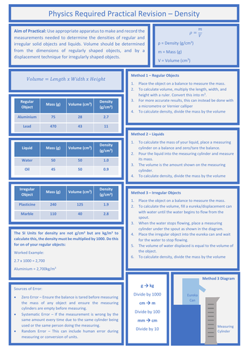 GCSE Physics: Density Practical | Teaching Resources