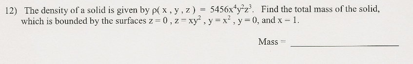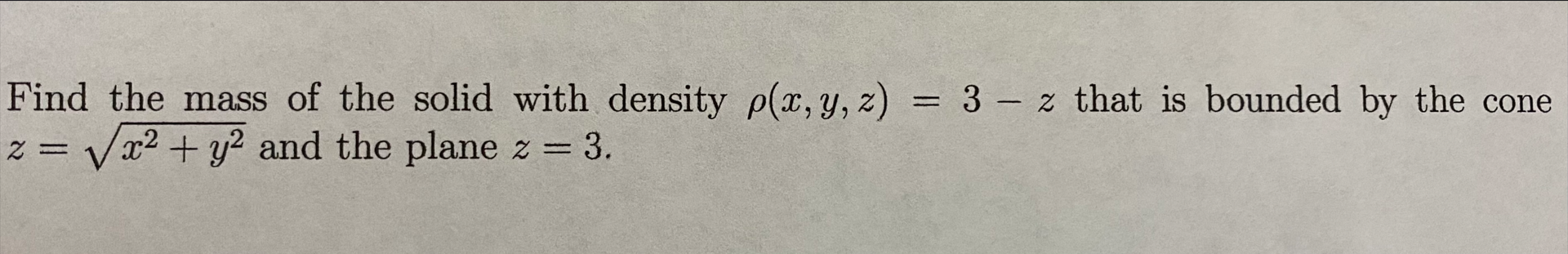 Solved Find the mass of the solid with density ρ(x,y,z)=3-z | Chegg.com