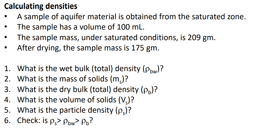 Solved Calculating densities - A sample of aquifer material | Chegg.com