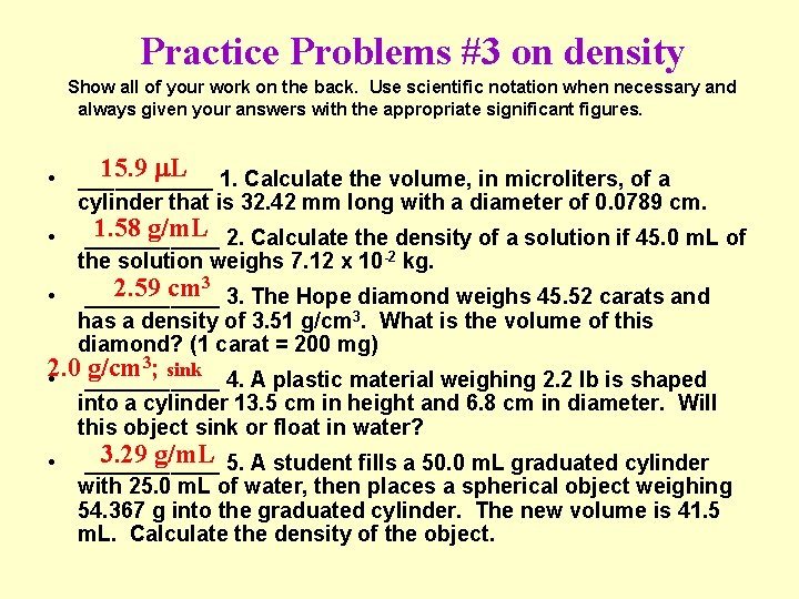 Density Practice Problems - ppt download