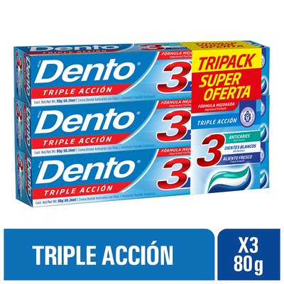 Pasta Dental DENTO Triple Acción Tubo 80g Caja 3un - Oechsle