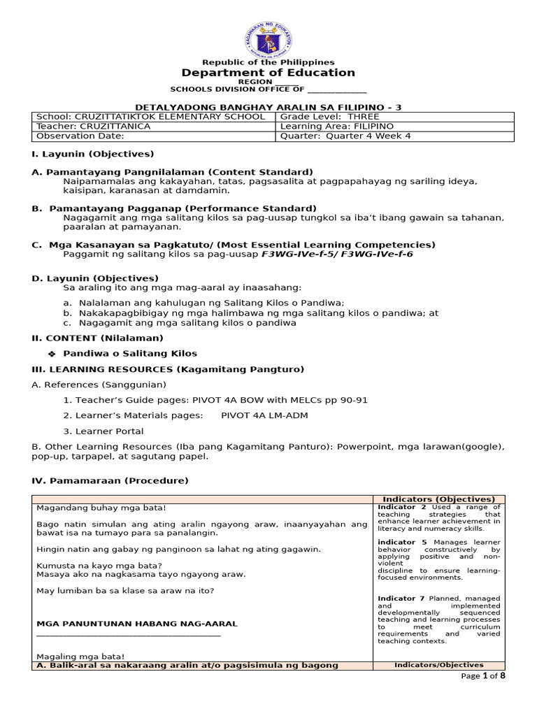 Detailed Lesson Plan Deped Format Pdf Filipino - Infoupdate.org