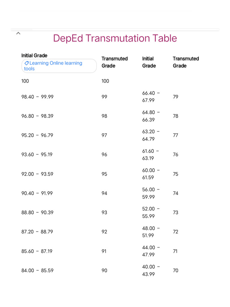 DepEd Transmutation Table | PDF